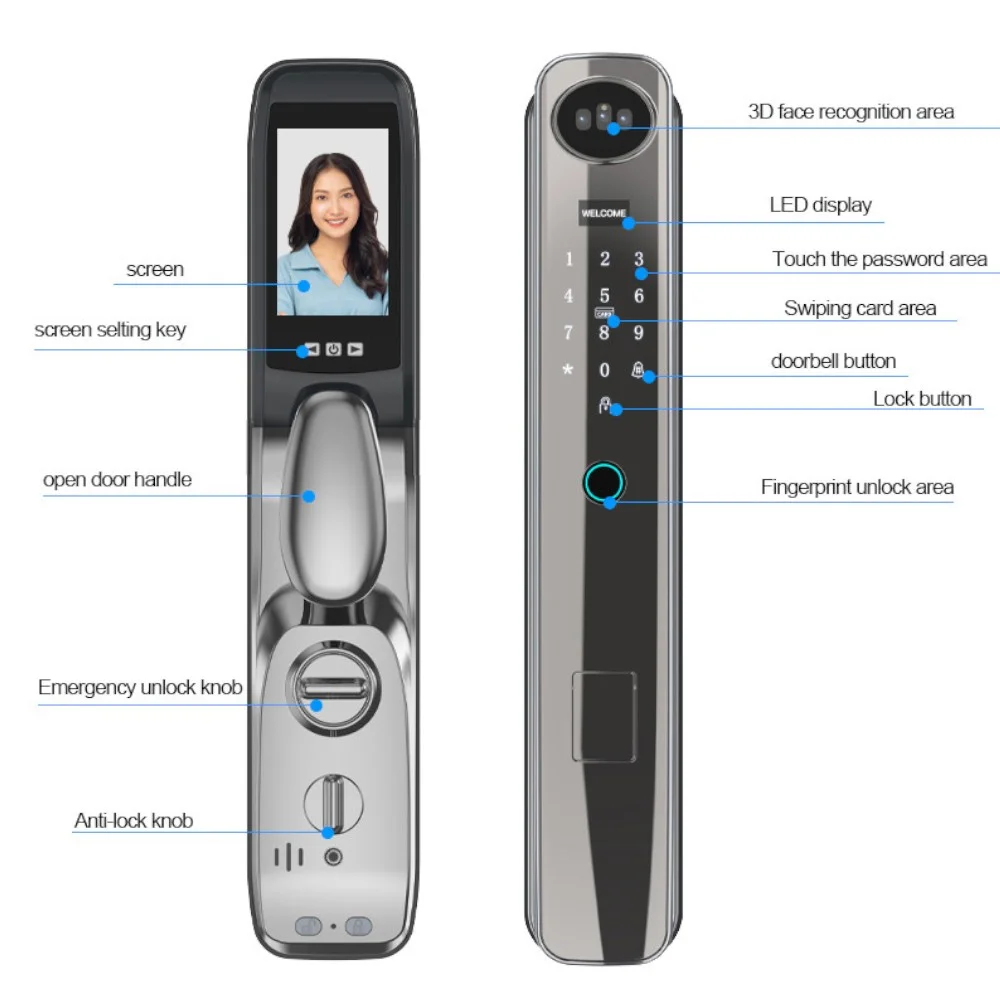 - Face Recognition: Easily unlock your door with a quick glance. The advanced 3D facial recognition technology ensures only authorized faces gain access, even with veils, makeup, beards, eyeglasses, or in low light conditions.